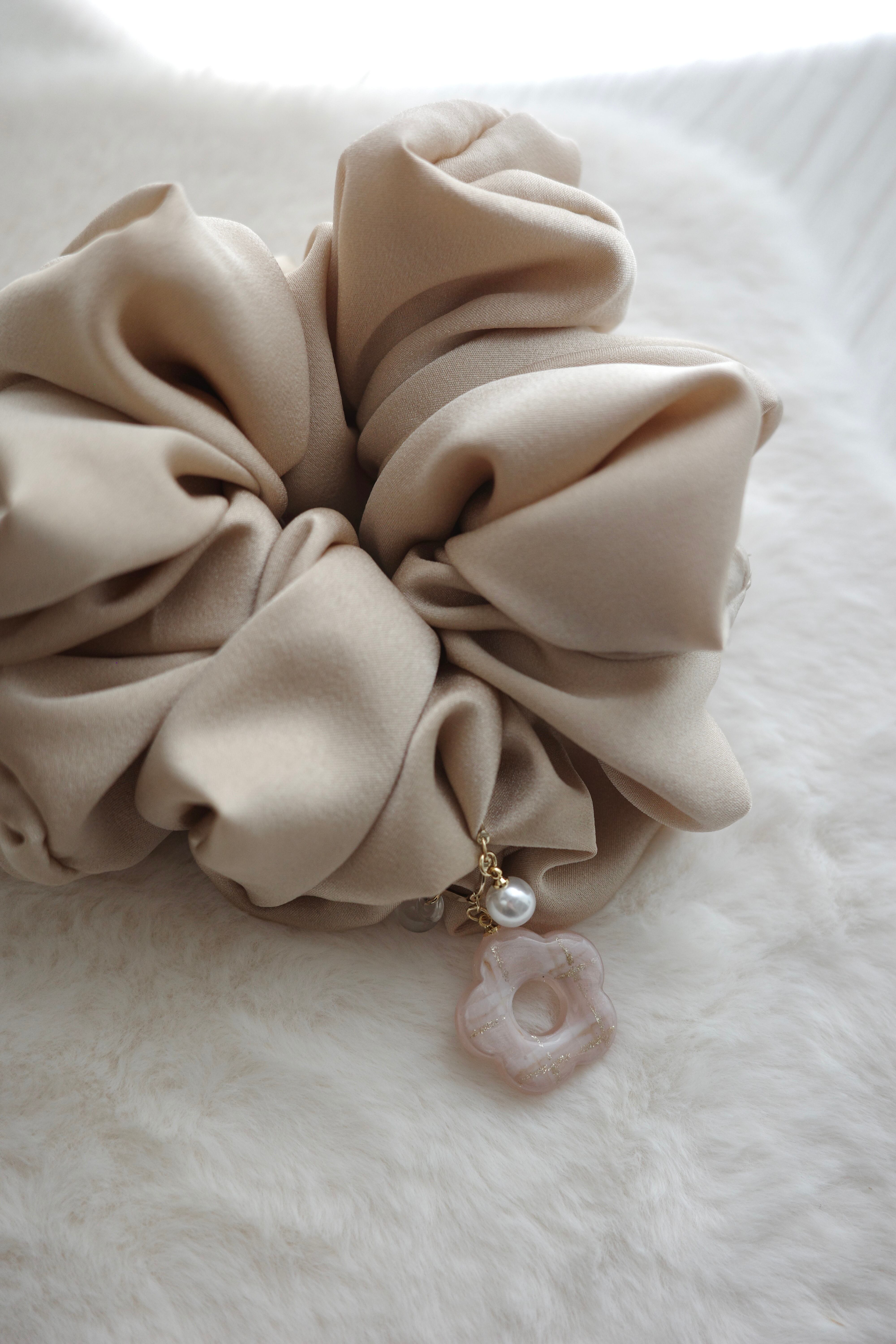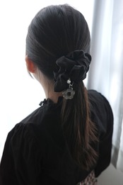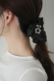 つややかな生地を贅沢に使い、ふんわりとしたボリュームが楽しめるシュシュです。
