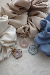 つや感のある生地を贅沢に使用し、手首に付けても結んでもふわっと可愛いボリュームに。