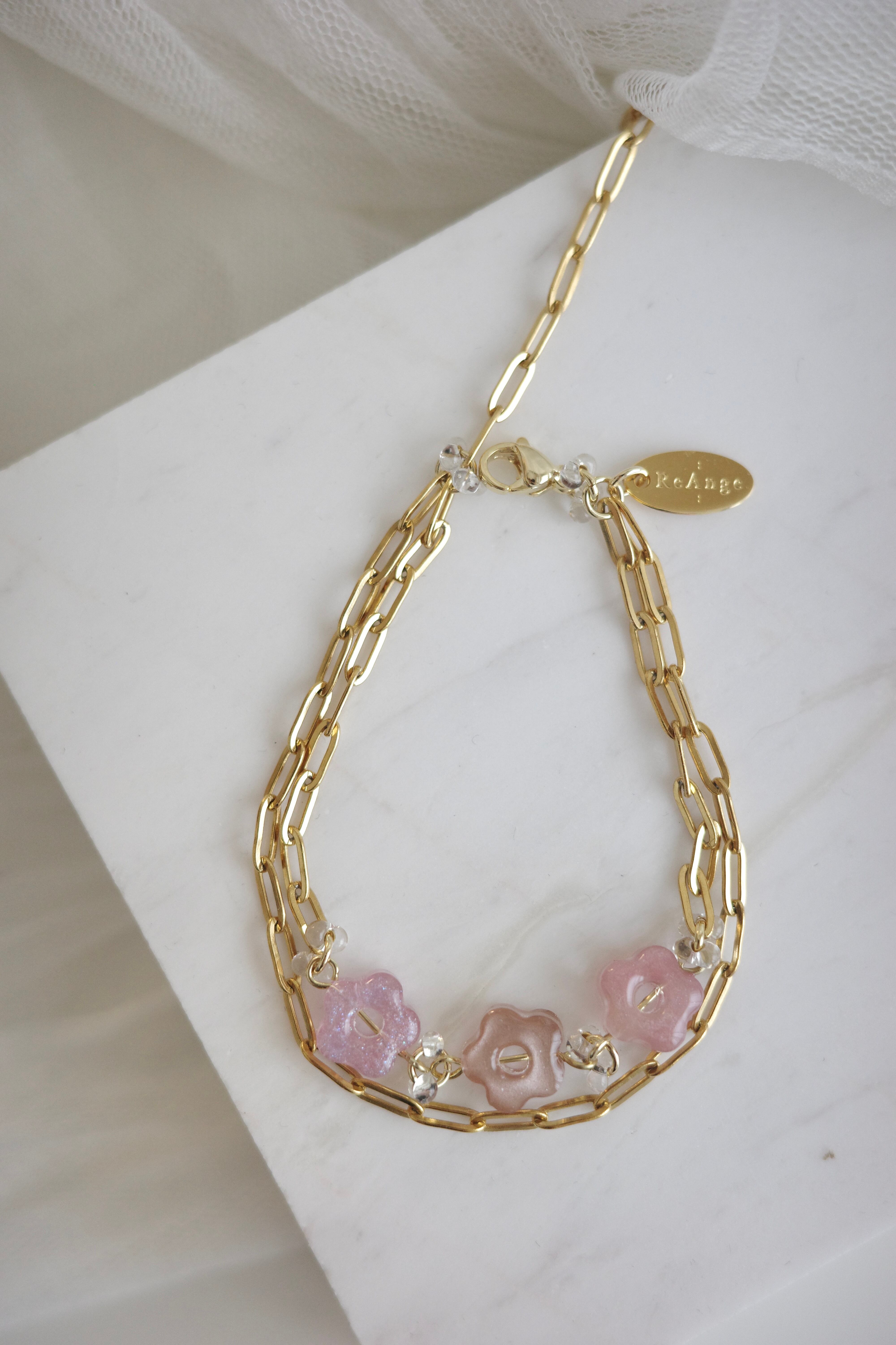 ふんわりと光を透かす、小さな花たちを並べたブレスレット。