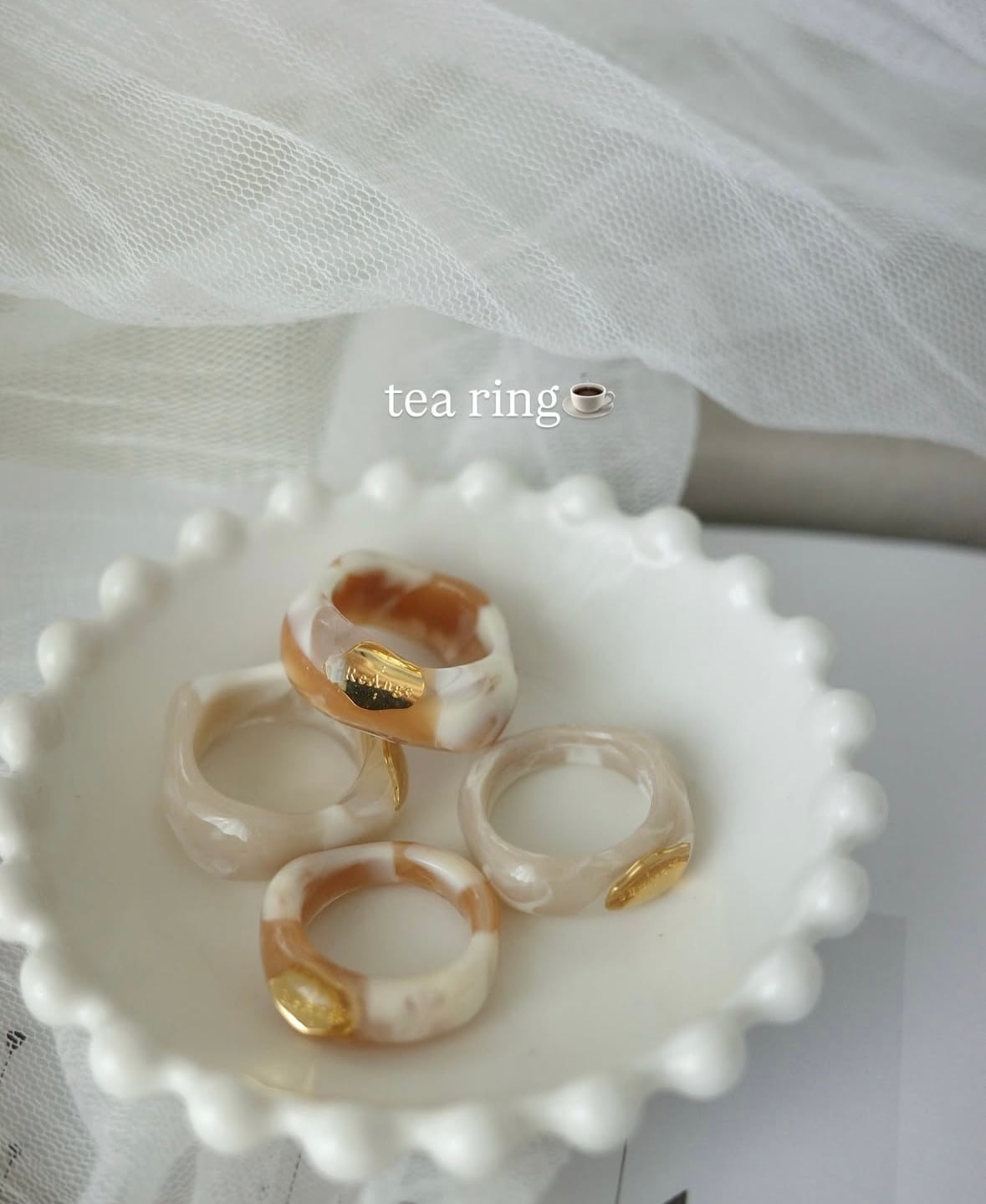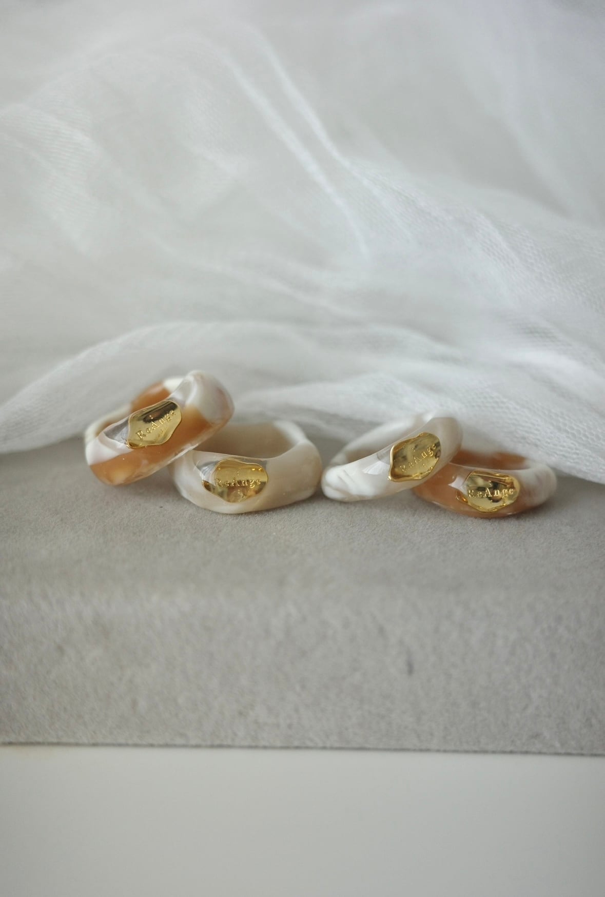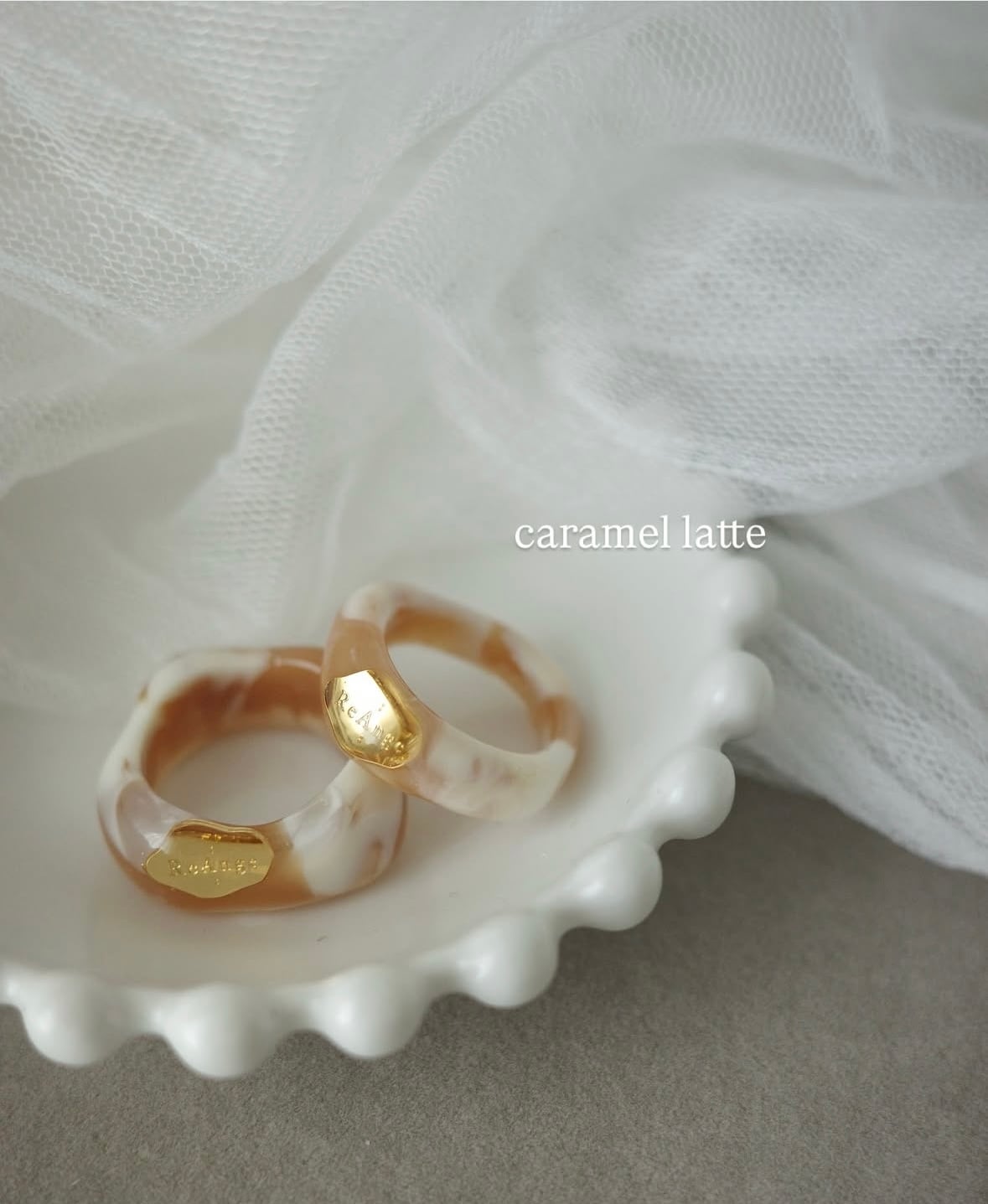 まろやかなラテカラーをそのまま閉じ込めたような、やさしい表情のレジンリング。