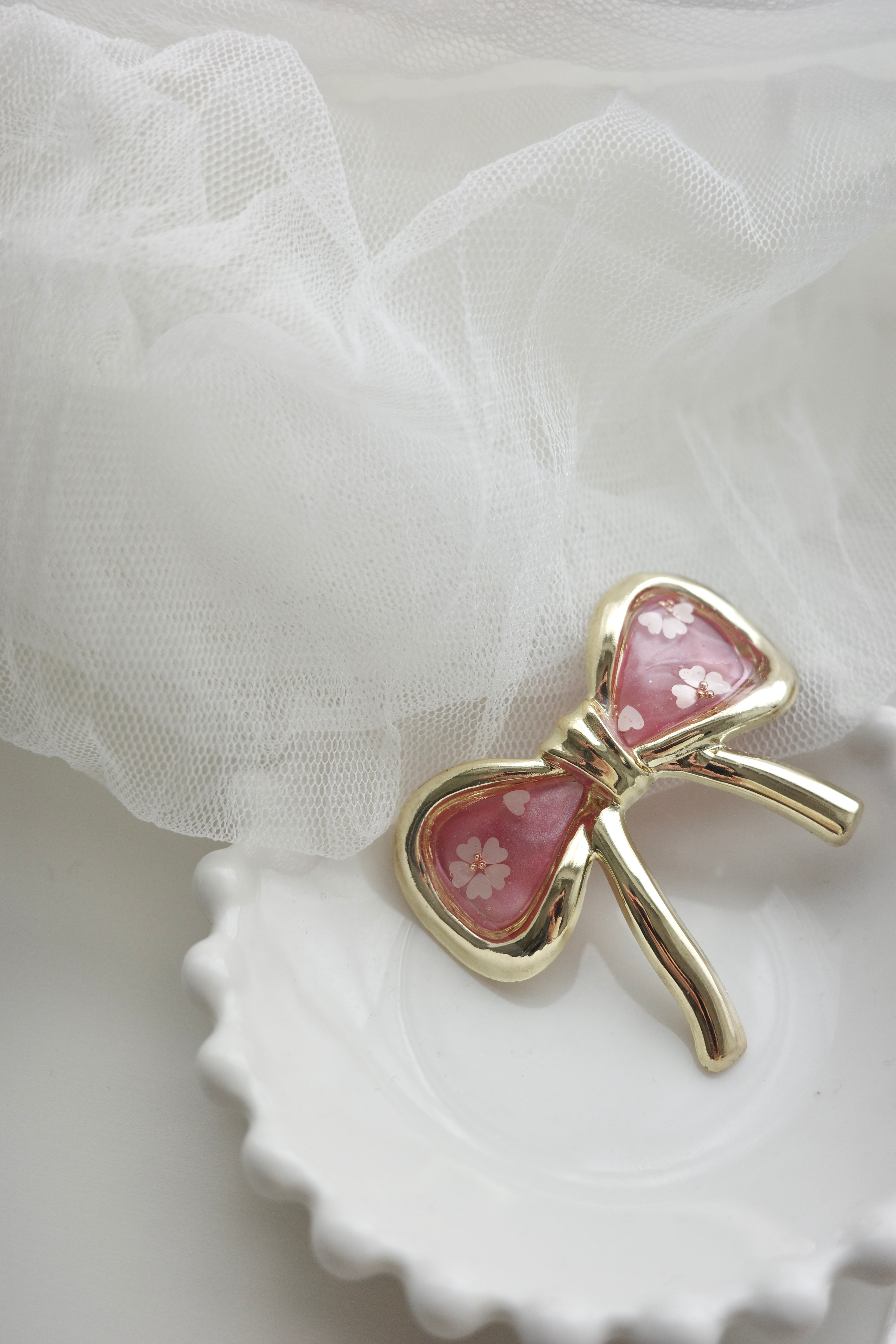 光を受けるとリボンのラインがさりげなくきらめき、まとめ髪に華やかさを添えてくれます。
