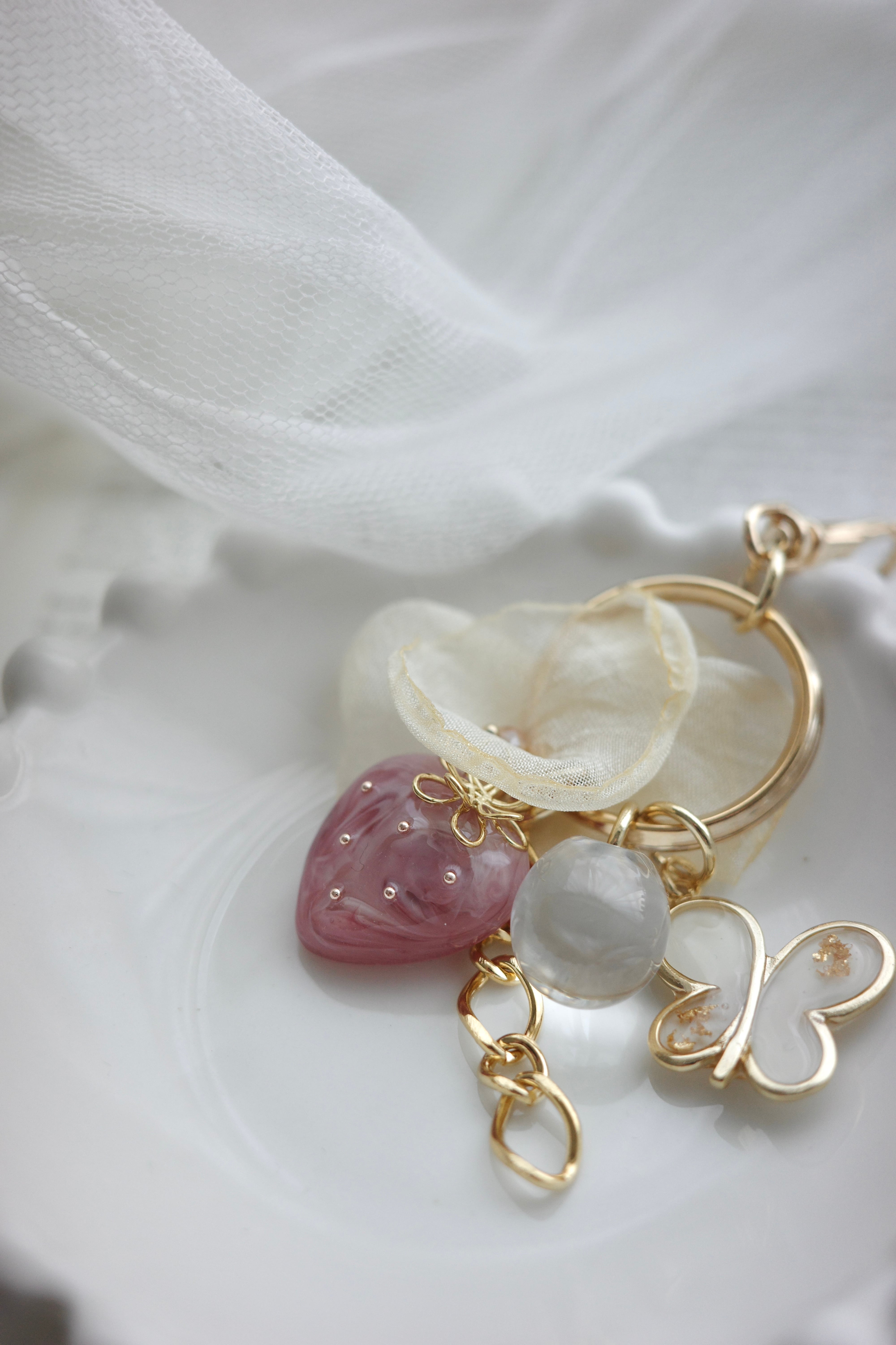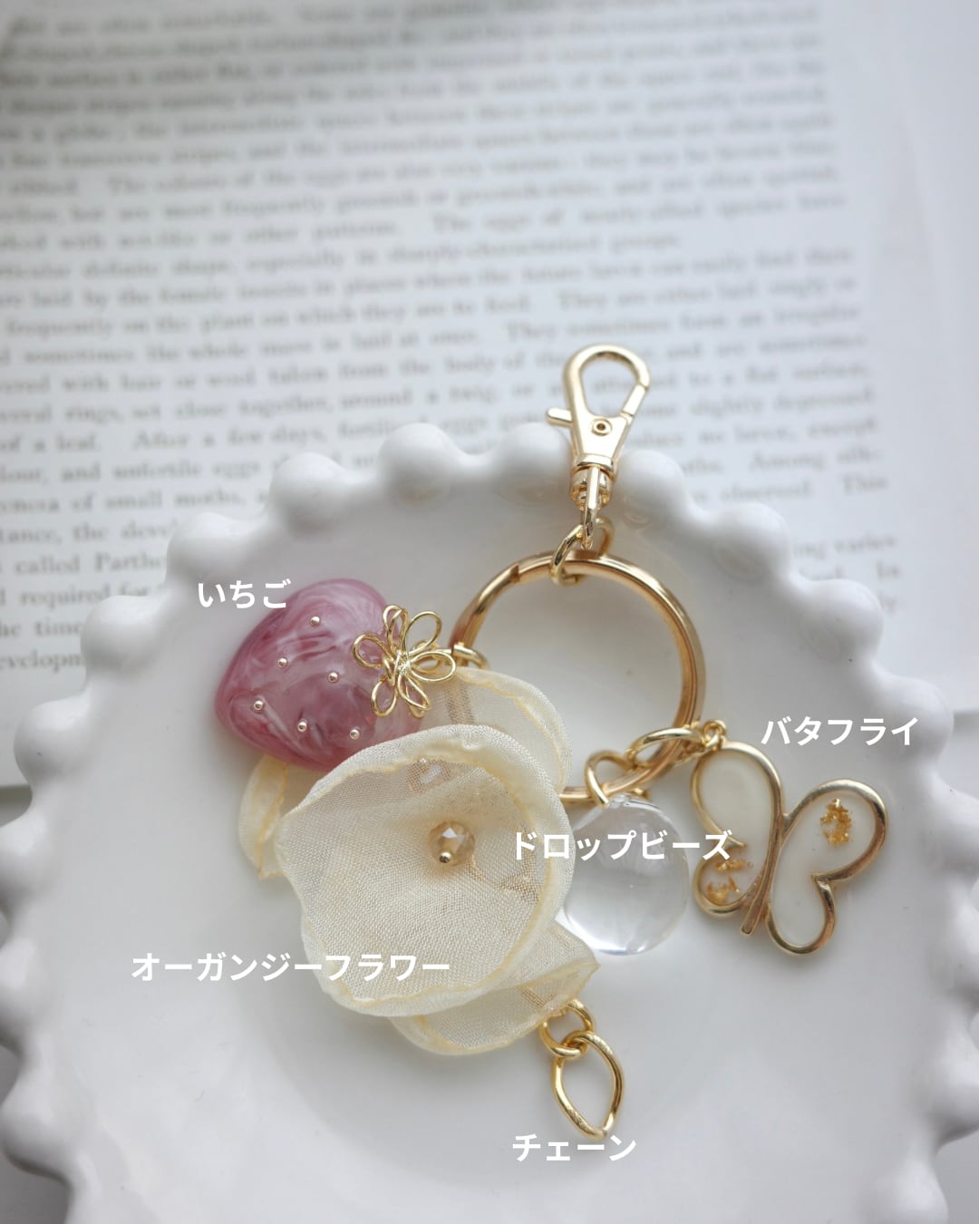 素材:レジン、真鍮パーツ、アクリルパーツ、オーガンジーフラワーパーツ